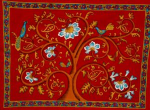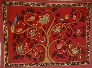 Arbre de vie fond rouge 2a-AC2 (108×82) – Kalamkari