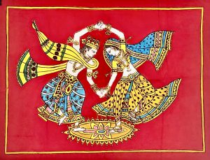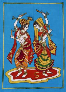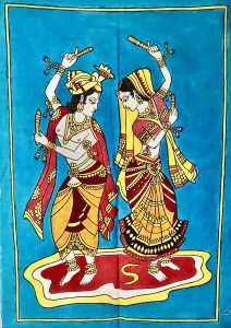 Krishna et Radha fond bleu K13 (73×52) – Kalamkari
