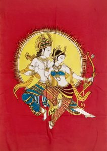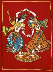 Krishna et Radha fond rouge K6a (66×50) – Kalamkari