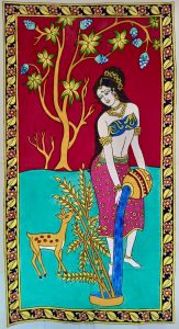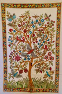 Nous ne nous arrêtons pas là, car la culture indienne est riche et variée. Dans notre boutique, vous trouverez également des objets artisanaux, tels que des guirlandes de Ganesh et des Kalamkari (peinture végétales à la main sur toile de coton) qui embelliront votre espace de pratique. Ces articles apportent une touche spirituelle et esthétique à votre environnement, favorisant ainsi une ambiance propice à la méditation et à la concentration.