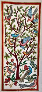 Arbre de vie oiseau old fond noir A6 (120×51) – Kalamkari