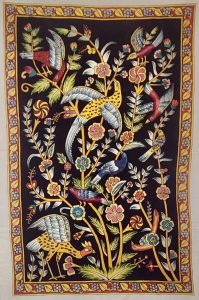 Arbre de vie fond noir AH3A-1a (103×67) – Kalamkari