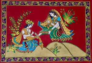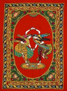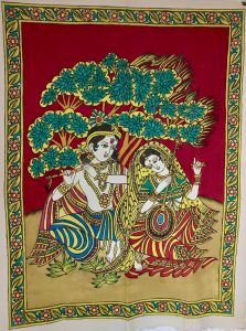 Krishna et Radha fond rouge K6b (92×67) – Kalamkari