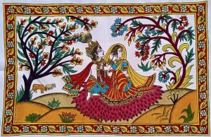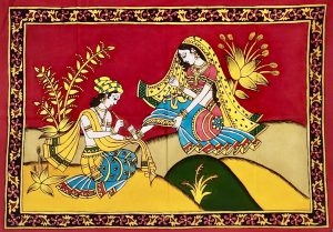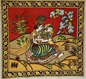 Krishna et Radha boucle d’oreille K1 (85×57) – Kalamkari