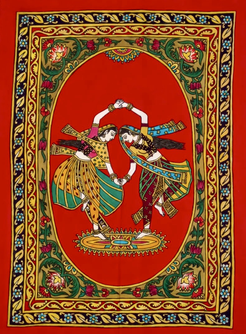Accueil / Produits / 2 Danseuses F1a (73×54) – Kalamkari