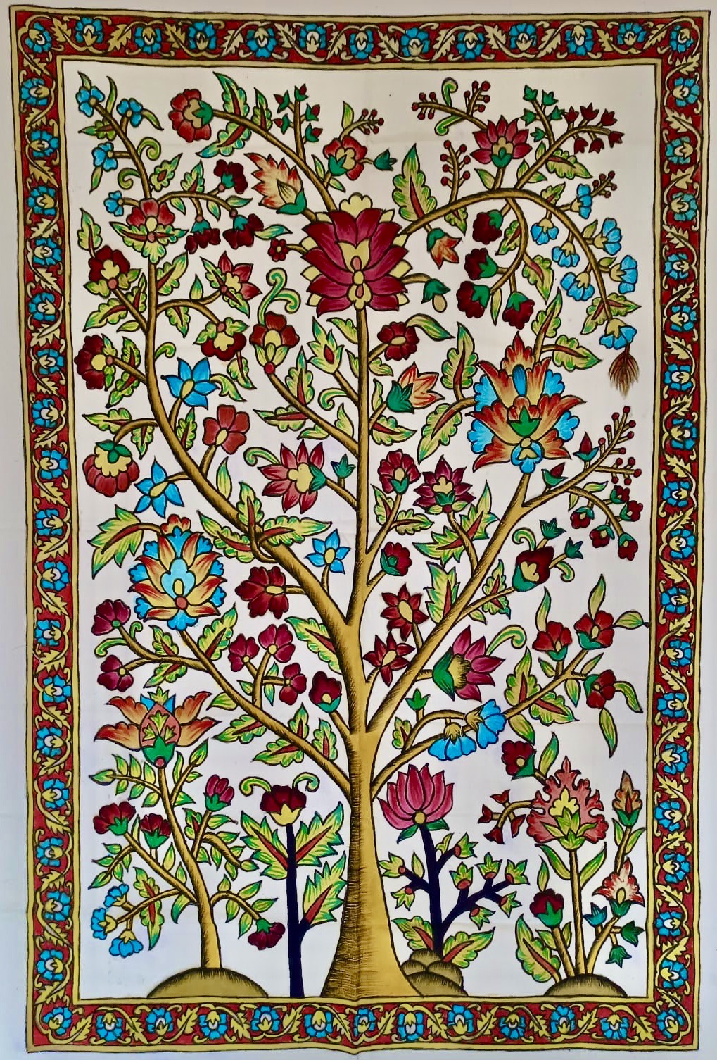 Apportant une énergie singulière à une pièce de vie, le choix d’un kalamkari pour chacun et chacune n’est pas anodin. Il trouve sa place à la fois dans les lieux de vie collectifs (cabinet de thérapie, salle de pratique, d’attente ou de rassemblement…etc) et individuels, plus intimes (entrée d’une maison, salon, salle à manger, chambre des enfants, des parents, des invités, atelier de création…etc).