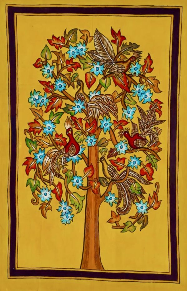Accueil / Produits / Kalamkari / Arbre de vie / Arbre de vie fond jaune 1b-AB2 (92×58) – Kalamkari