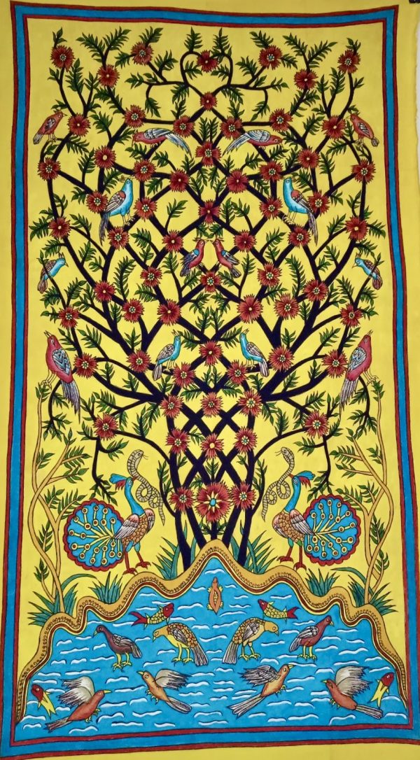 Arbre de vie fond jaune 2-AB3 (131×74) – Kalamkari