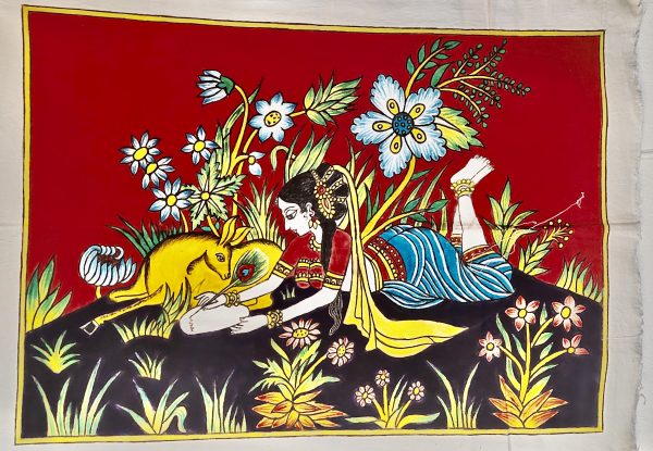 Femme et faon F3 (75×57) – Kalamkari