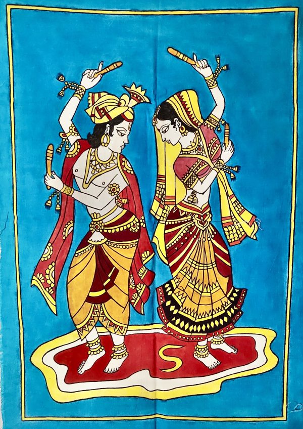 Accueil / Produits / Krishna et Radha fond bleu K13 (73×52) – Kalamkari
