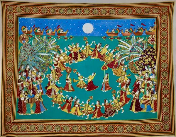 Krishna shri Nathaji with the gopis K10b (228×188) – Kalamkari