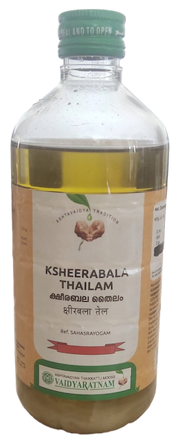 Idéale pour toutes sortes de troubles du Vata et Pitta, le stress, les massages de la tête et les sirodhara. Il s’agit d’une huile de la tête et du cou qui est anti-inflammatoire, analgésique et anti-rhumatismale, car elle refroidit. Elle est excellente pour le système nerveux. Ksheerabala tailam – huile ayurvédique 450ml.
