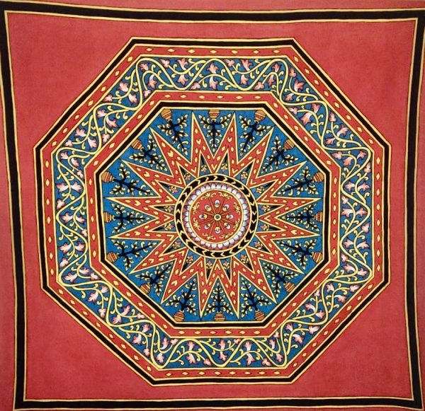 Accueil / Produits / Mandala fond rouge BC5 122×119) – Kalamkari