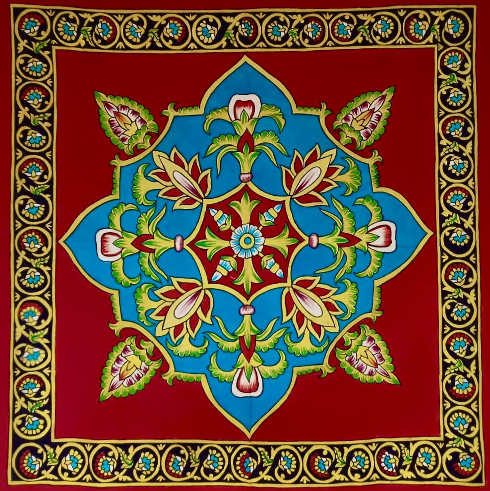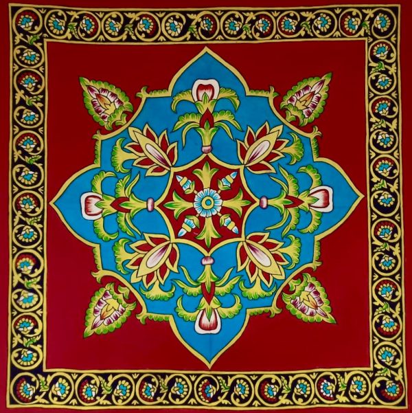 Accueil / Produits / Kalamkari / Mandala fond rouge BC7 (87×86) – Kalamkari