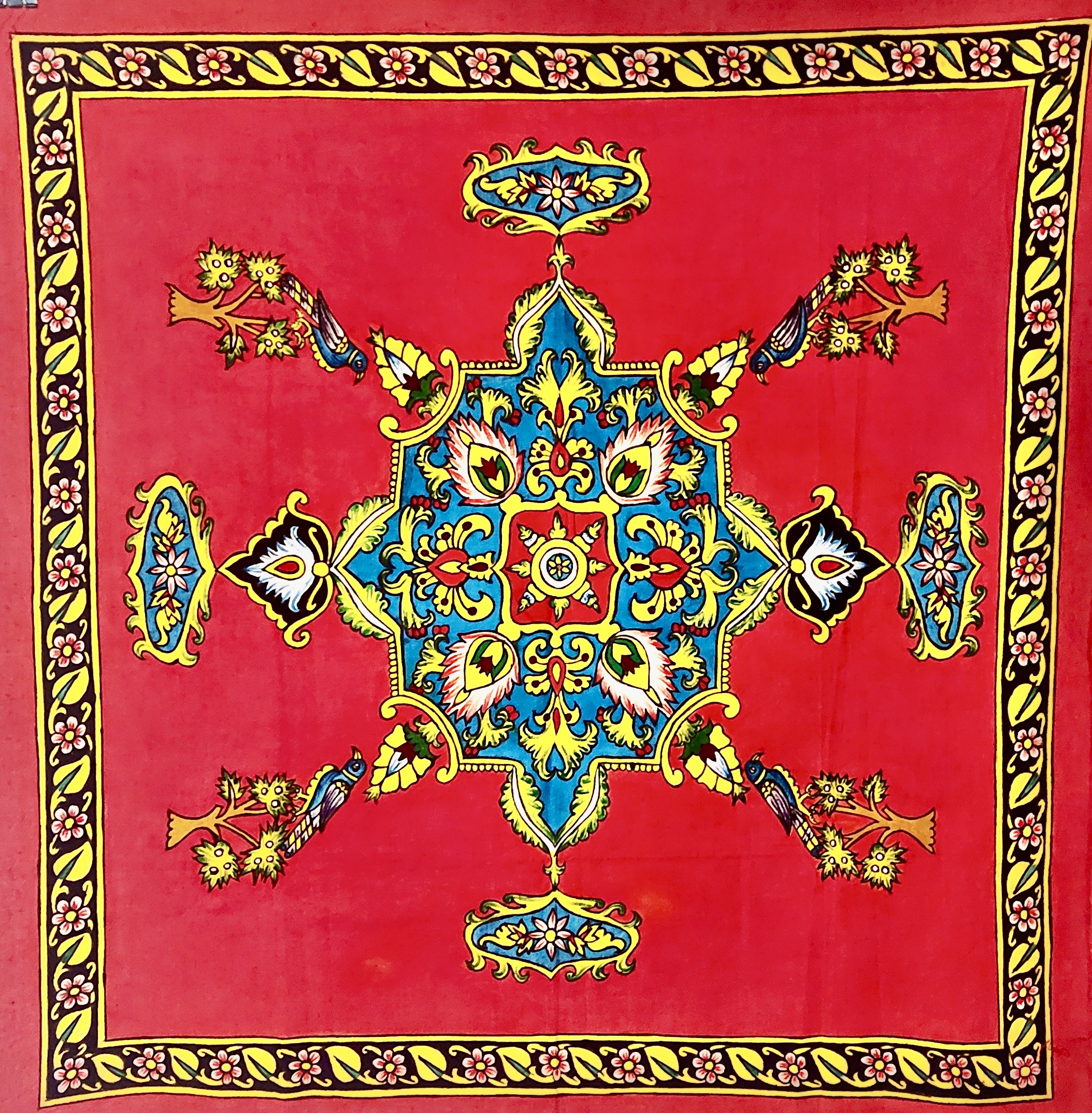 Accueil / Produits / Mandala fond rouge BC9 (89×90) – Kalamkari