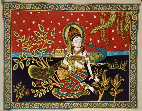 Accueil / Produits / Radha et paon V1 (100×80) – Kalamkari