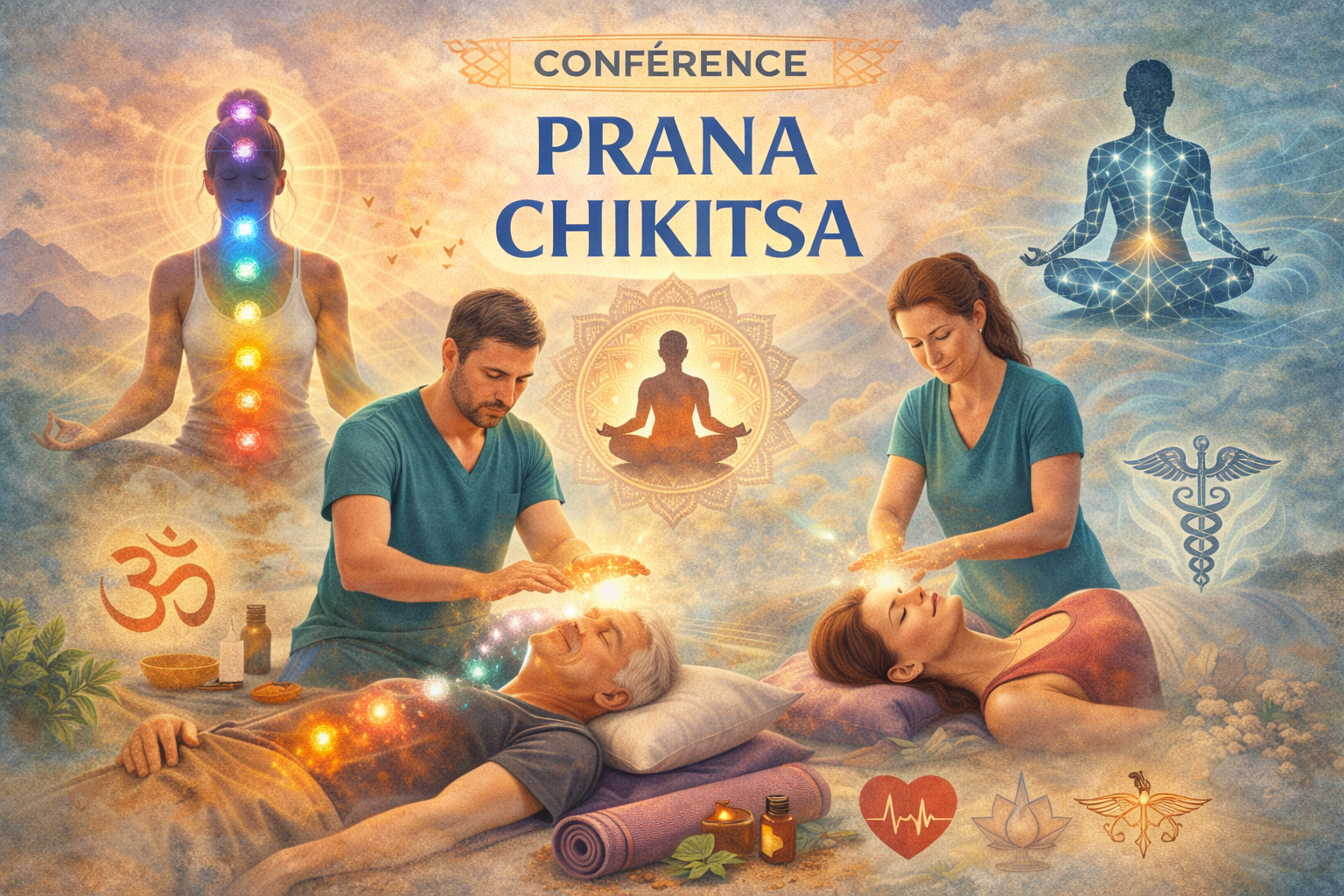 – Prana chikitsa (Samedi 23 mai 2026 19h00-20h30) : Ou thérapie par le prāṇa, vient du yoga et de l’ayurveda. Le but est de remettre en ordre l’énergie vitale/prāna (souffle, énergie, force de vie) qui circule dans des canaux/les nāḍī, et joue un rôle sur notre santé physique, émotionnelle et mentale. Si ça coince quelque part, si le flux est faible, on peut avoir des troubles. La Prāṇa Chikitsa essaie de relancer ce flux avec différentes techniques.